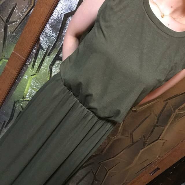 ゆるてろ ブラウジング ロングフレアワンピ カーキ