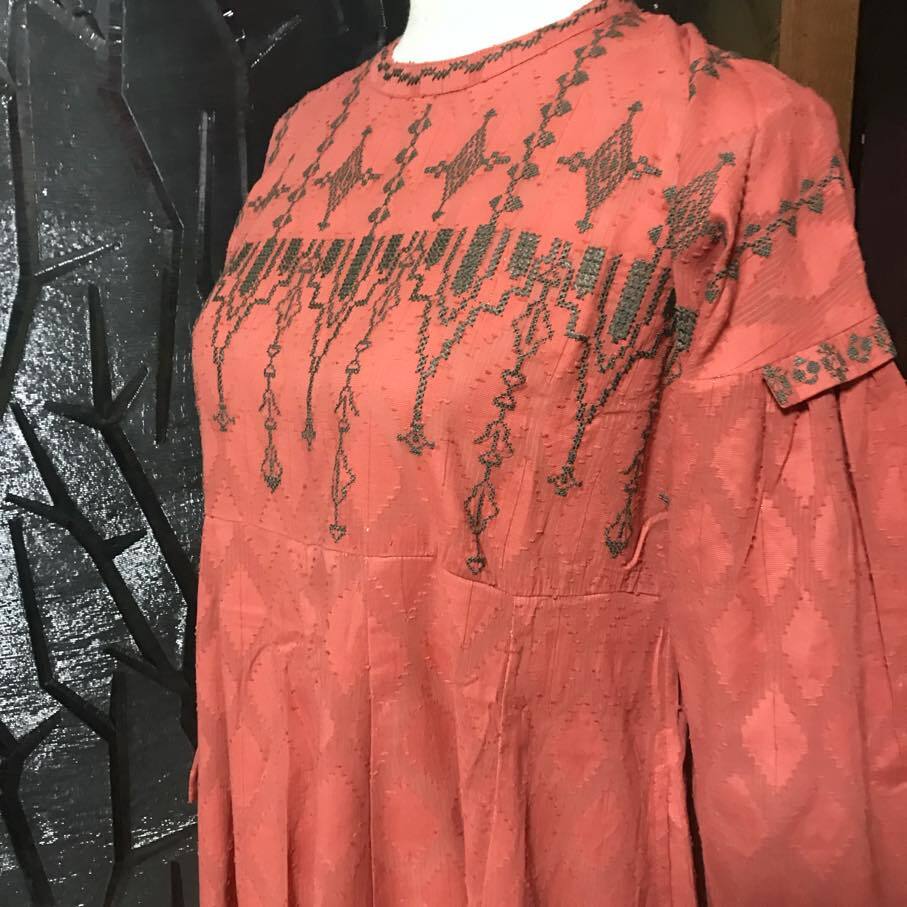 マライカ コットンジャガードゴシック刺繍ワンピース オレンジ