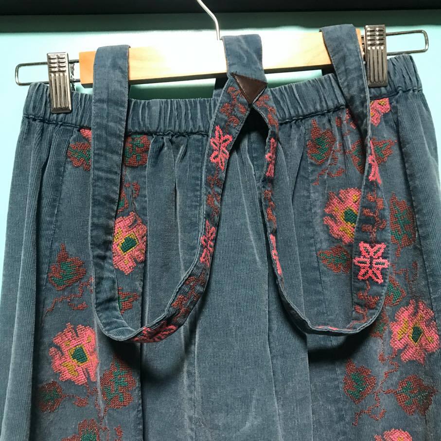 マライカ コットンコーデュロイ刺繍スカート ブルーグレー
