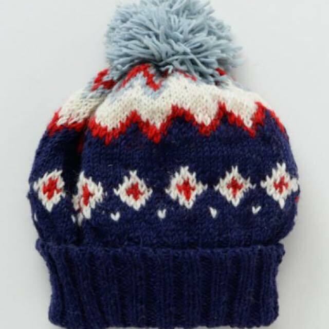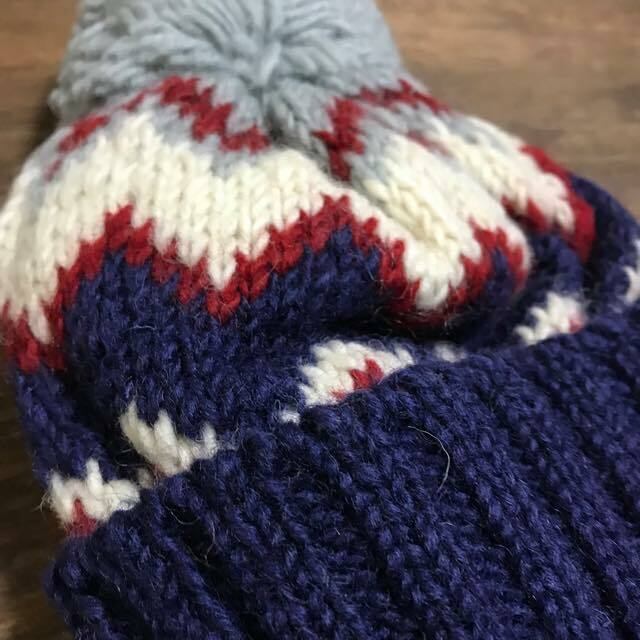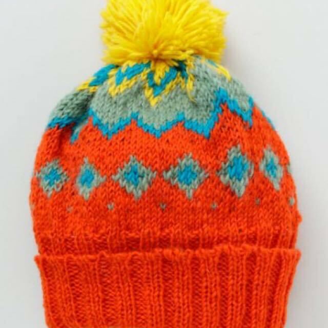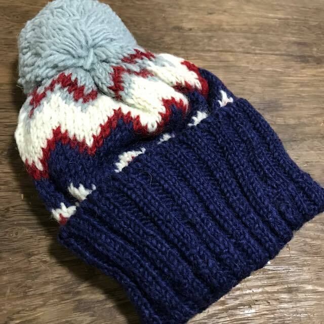 柄が素敵なハンドニットキャップ。